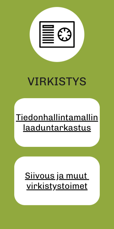 Tiedonhallintamallin toteutukseen tarjoamme apua joka vaiheeseen. Autamme sinua sekä työkalujen että tiedonhallintamallin sisältöjen kanssa. Tiedonhallintalaki on pysyvä velvoite, joten palvelumme kattaa myös vinkit tiedonhallintamallin ylläpitoon. Lisäksi meiltä saa apulaisia sisältöjen siivoukseen.